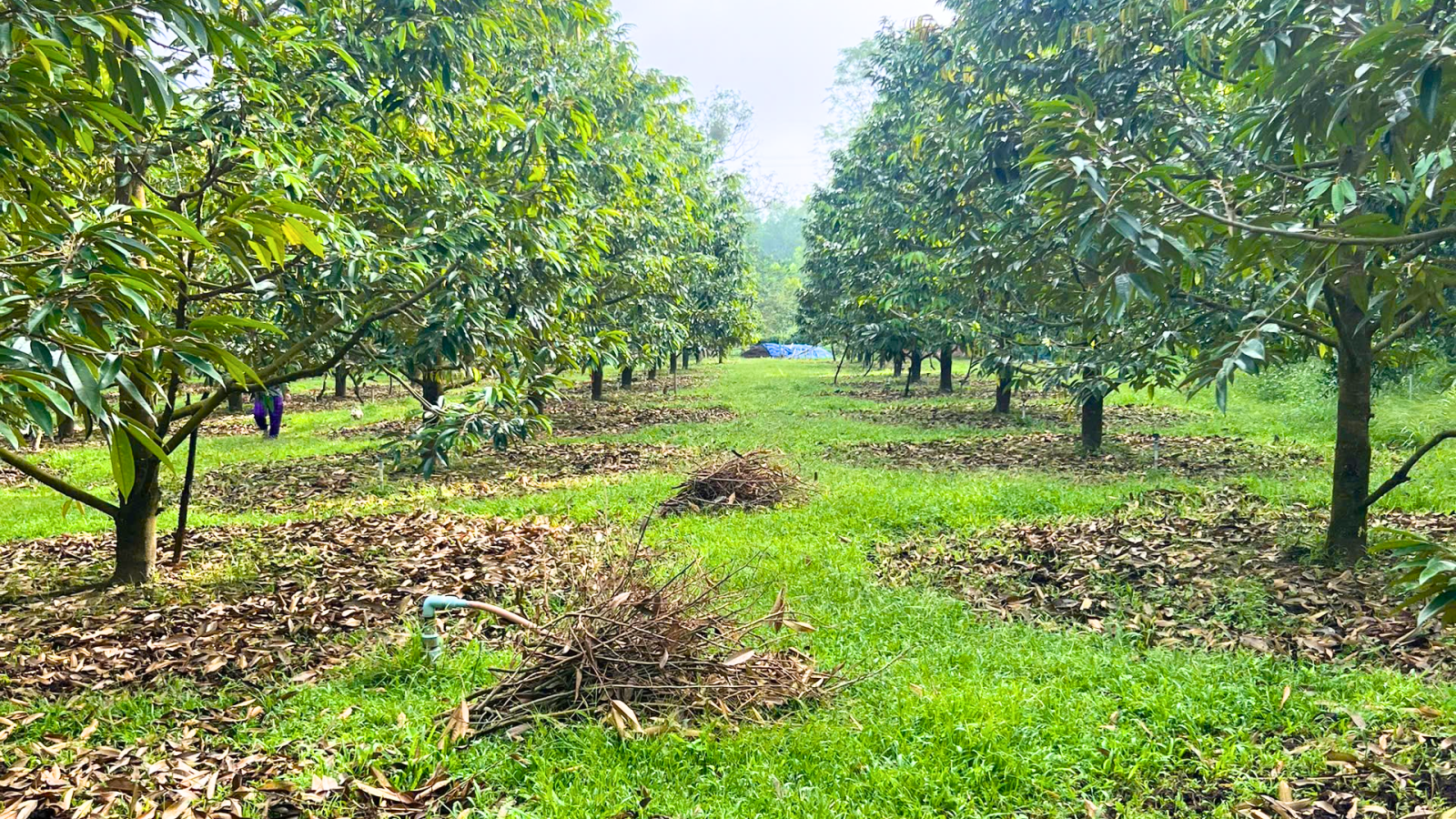 - Thăm vườn thường xuyên để theo dõi tình hình phát triển và bệnh hại xuất hiện trên cây sầu riêng, cắt tỉa cành, tạo tán, cắt tỉa bỏ những cành bị bệnh… Cắt cỏ, dọn sạch rác, không để vườn cây quá ẩm ướt, ánh sáng chiếu được đến tất cả các bộ phận của cây, quy trình tưới nước hợp lý, nên có rãnh thoát nước trong vườn để khi mùa mưa thì không bị ứ động nước hay ngập ún.