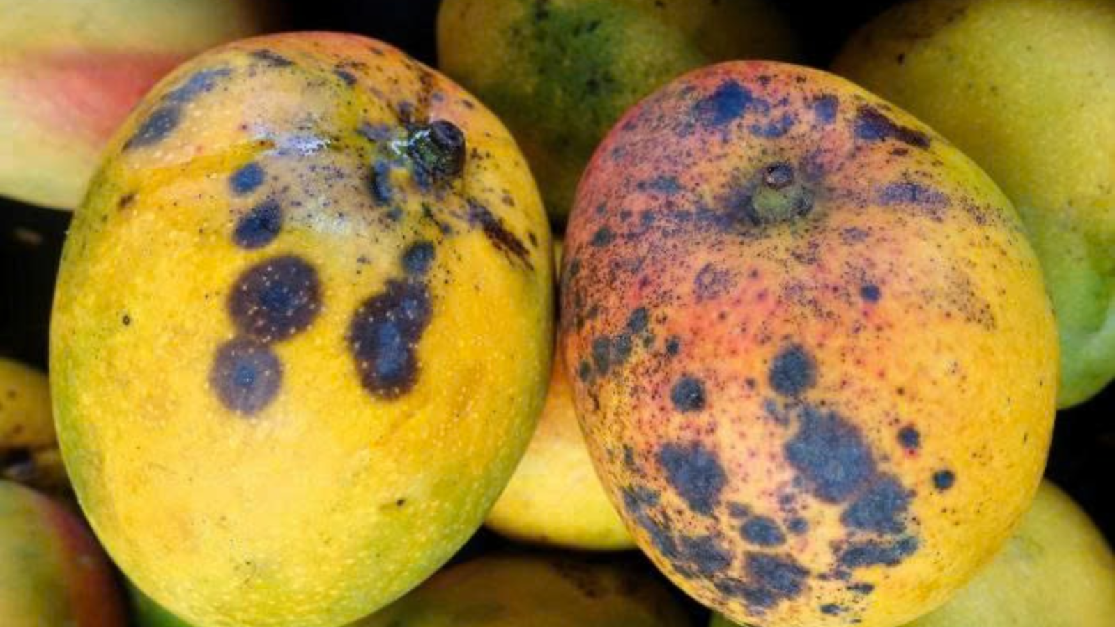 - Bệnh thán thư trên xoài do nấm Colletotrichum gloeosporioides gây ra. Đây là loại nấm phổ biến trên nhiều cây ăn trái, phát triển mạnh trong điều kiện nóng ẩm.