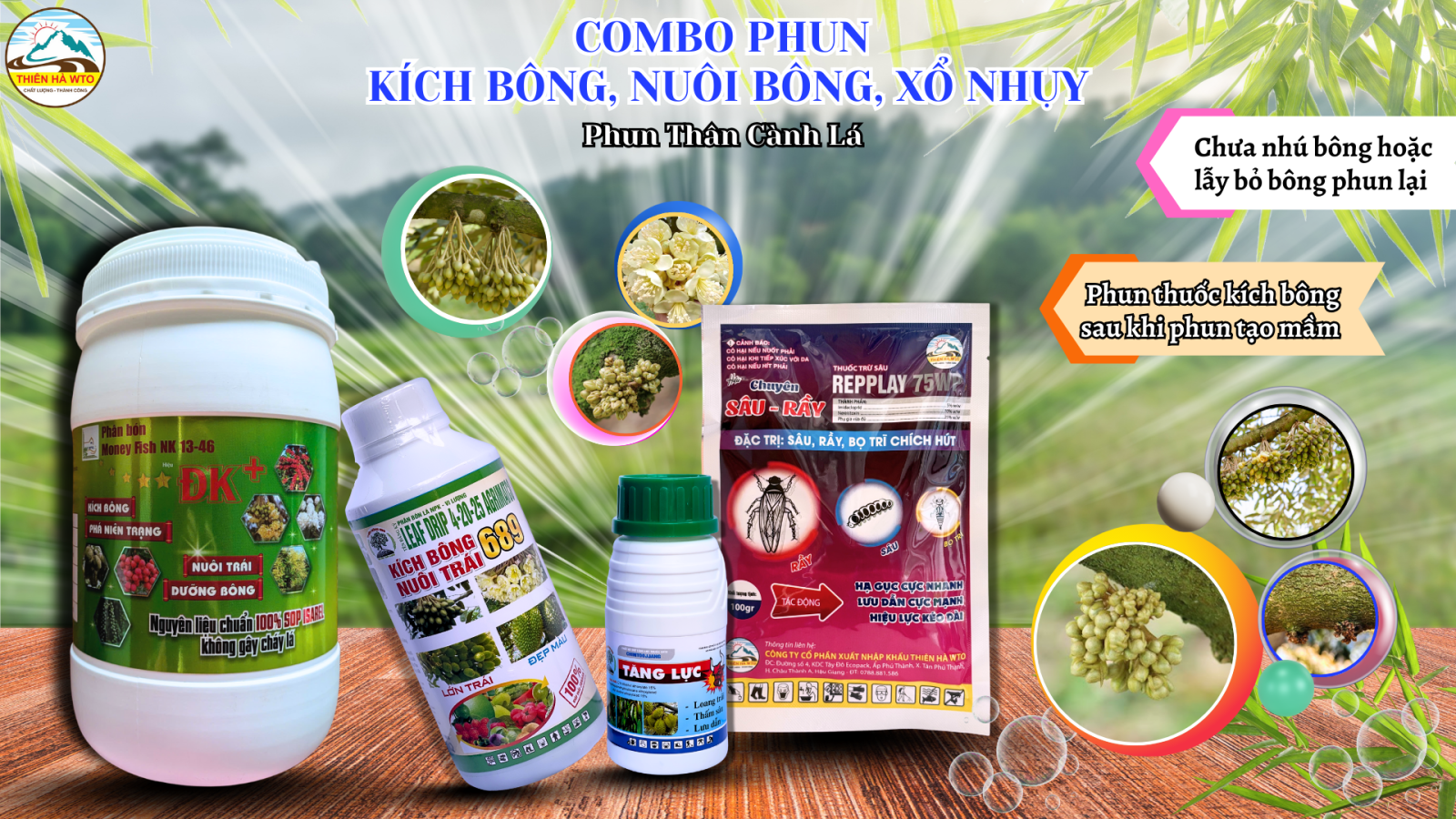 Combo kích bông – nuôi bông – xổ nhụy cho sầu riêng được thiết kế để hỗ trợ toàn diện từ khi bông nhú đến lúc nhụy xổ hoàn chỉnh.