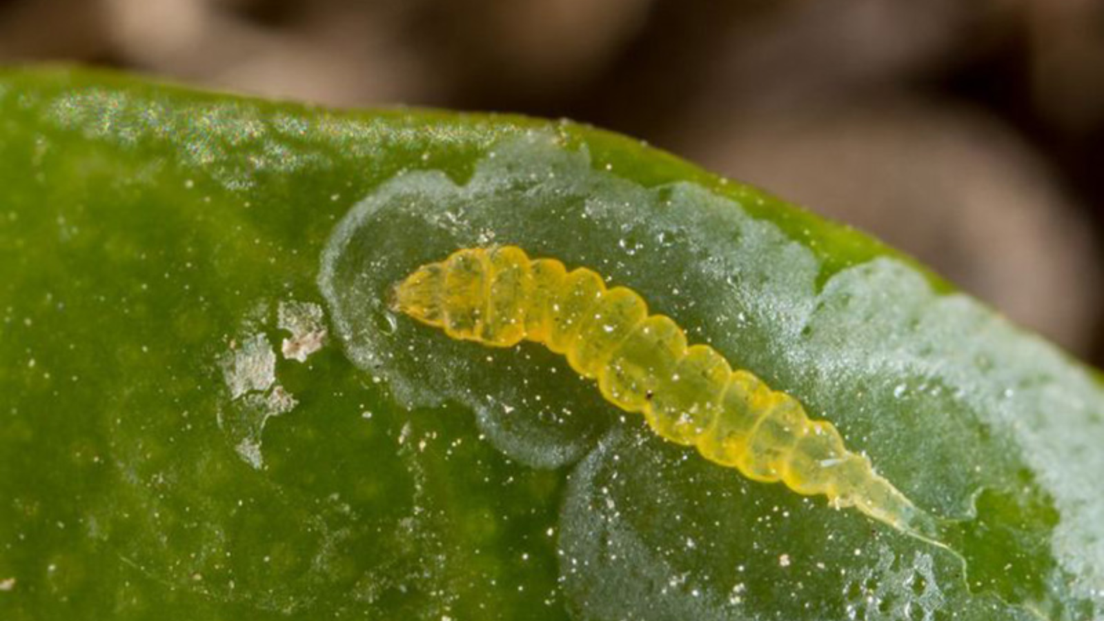 - Ảnh hưởng mạnh khi cây mới trồng và trên cành đang có hoa, trái…Sâu ăn và thải phân ngay phía sau, phân tạo thành một đường liên tục giống sợi chỉ nằm chính giữa và kéo dài. Lớp biểu bì bị bong ra hoặc trông giống như nhầy ốc sên, tạo điều kiện cho vi khuẩn phát sinh gây ra bệnh đốm lá mắt cua.