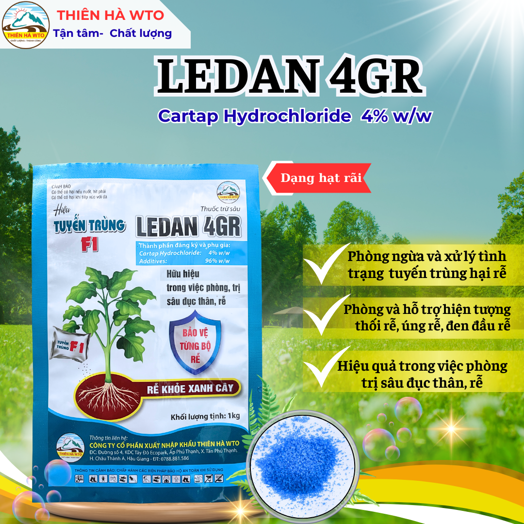 TUYẾN TRÙNG F1 – LEDAN 4GR là dòng thuốc trừ sâu dạng hạt chuyên xử lý đất, giúp phòng và trị hiệu quả tuyến trùng, sâu hại trong đất, bảo vệ toàn diện bộ rễ ngay từ giai đoạn đầu.