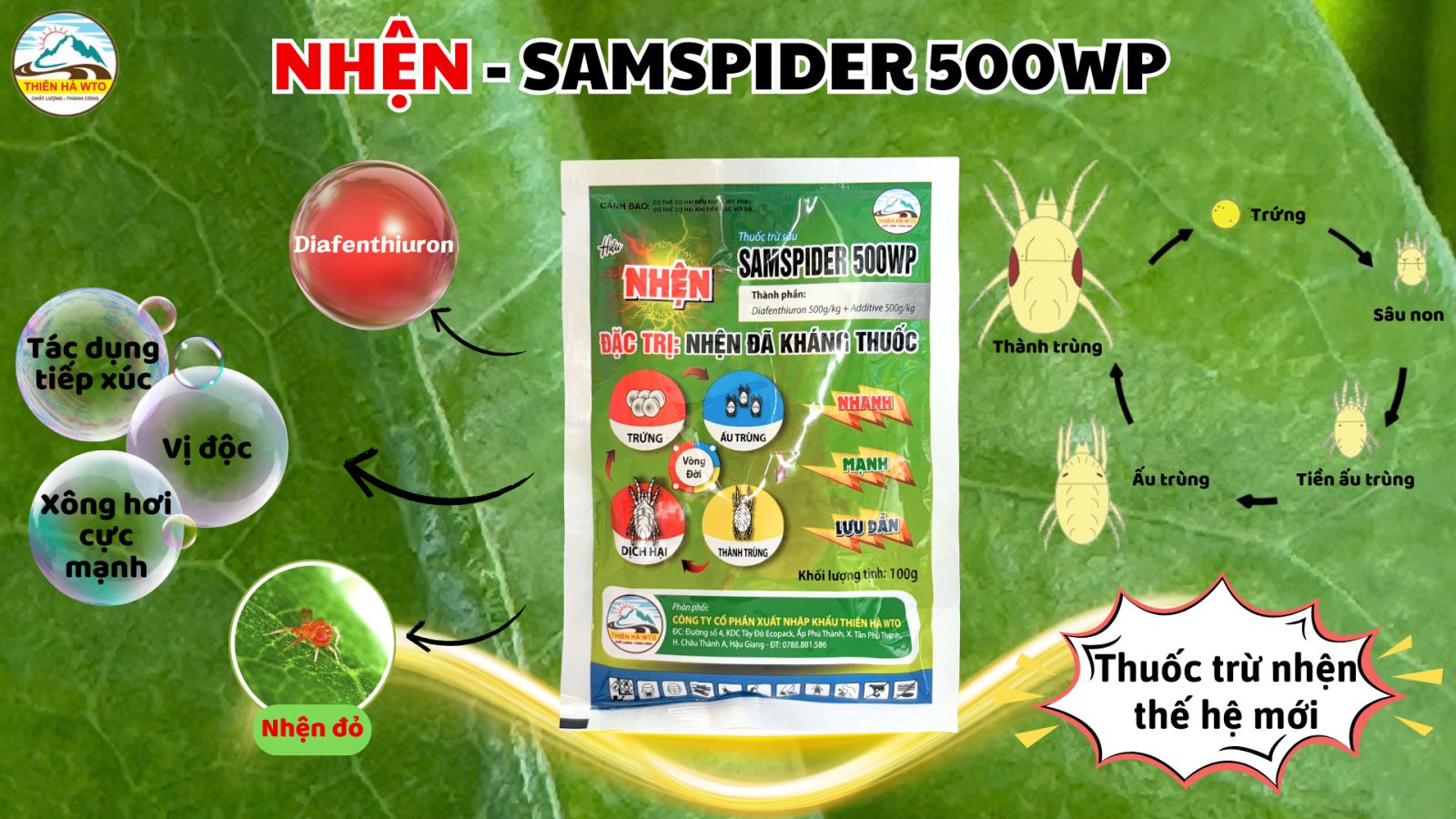 SAM SPIDER 500WP là sản phẩm trừ nhện với hoạt chất Diafenthiuron 500 g/kg.