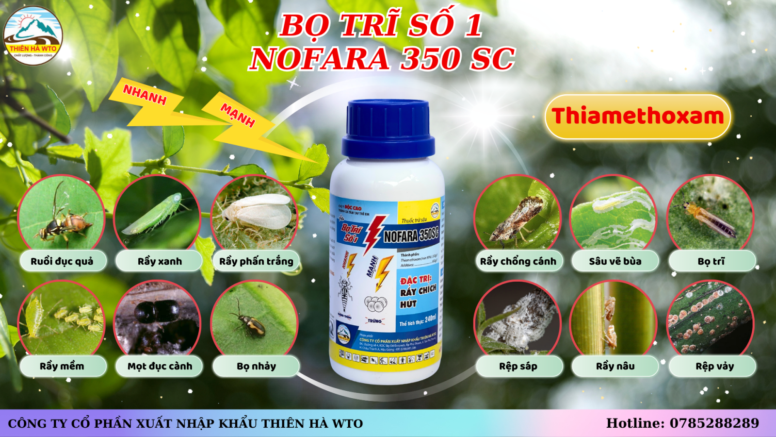 * NOFARA 350SC với hoạt chất chính: Thiamethoxam 350g/l